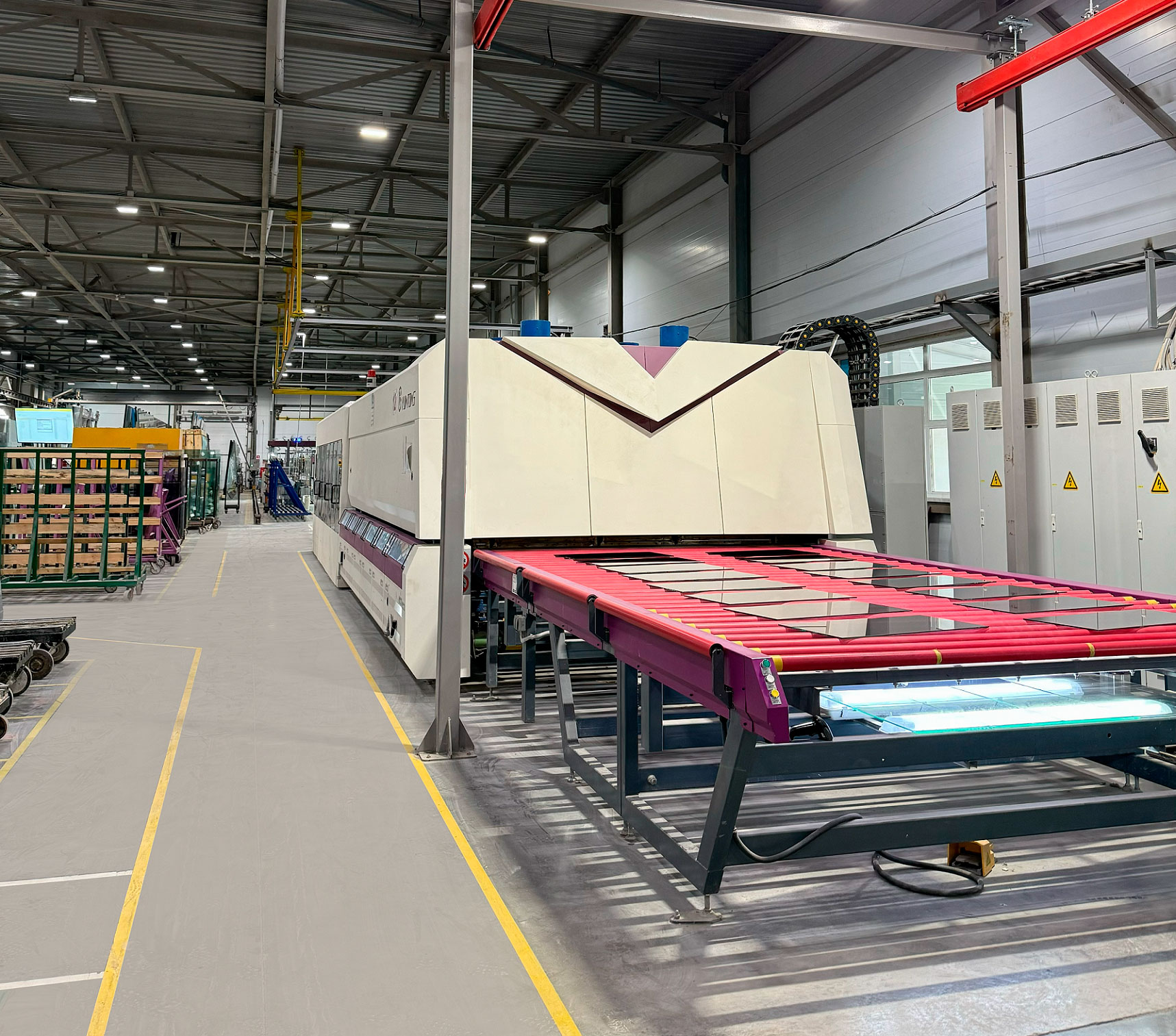 Современный парк высокоточного стеклообрабатывающего оборудования круглосуточно помогает Вам строить, производить массу нужных изделий с применением закалённого стекла.